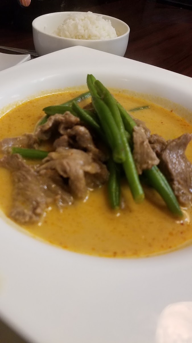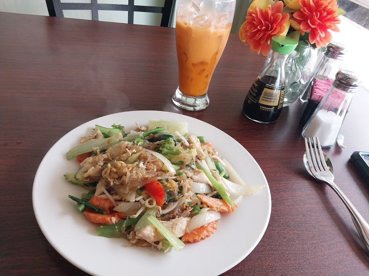 One of the standout dishes on the menu is the Green Curry, a rich and aromatic dish made with tender meat, fresh vegetables, and a spicy green curry sauce that perfectly balances heat and flavor. Another must-try is the Pad See Ew, a savory stir-fried noodle dish that features wide rice noodles tossed with vegetables, eggs, and your choice of protein. If you're a fan of bold flavors, the Panang Curry offers a creamy and spicy coconut base, with a perfect mix of herbs and spices that will tantalize your taste buds.